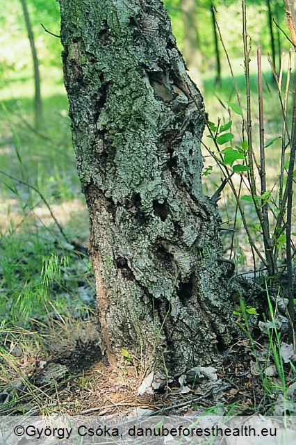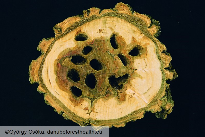 Larvae are feeding on the wood which can kill the trees. Although it is never found in large numbers.