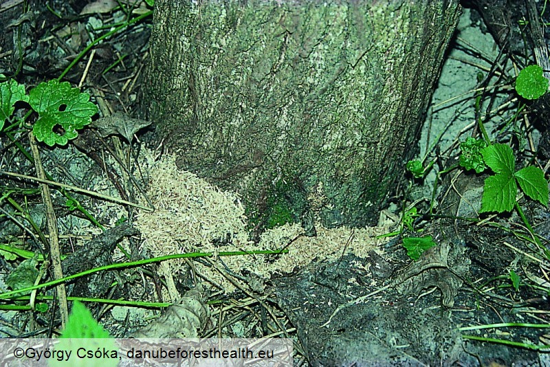 Fig. 3. Frass at the base of the tree cause by feeding of larva of Cryptorhynchus lapathi