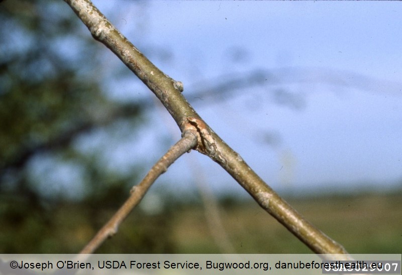 Fig. 3. A sign of the smaller European elm bark beetle maturation feeding on an elm twig