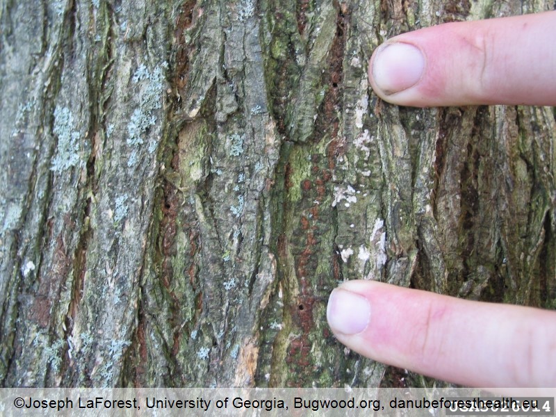 Fig. 4. The smaller European elm bark beetle emergence holes