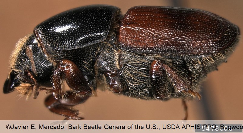 The larger European elm bark beetle, S. scolytus, is a Eurasian species that is common in Europe. It can be found throughout the ReFOCUS area.