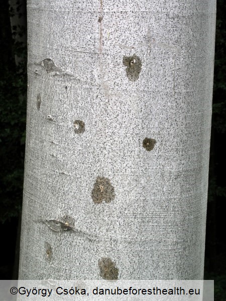 Fig. 4. Dark spots on the bark. Under these spots are galleries caused by Agrilus viridis