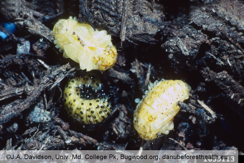 Xanthogaleruca luteola can be distinguished from other species by the characteristic morphology of all developmental stages.