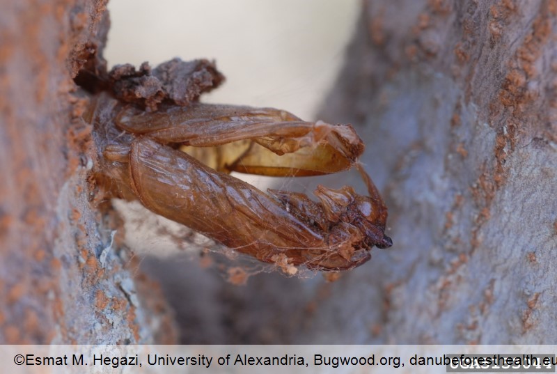 Fig. 4. Exuviae left in the emergence hole after the moth has left the host