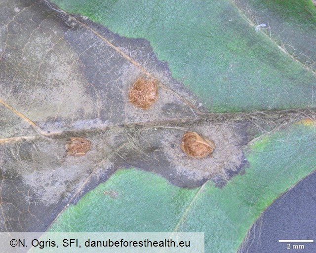 The fungus occurs in almost all green beech leaves as an endophyte without producing disease symptoms. The fungus only switches to a pathogenic phase when appropriate trigger is present. The main species acting as triggers are the pouch-gall midges, Mikiola fagi, and Hartigiola annulipes (Fig. 4). Late spring frost also acts as frequent trigger.