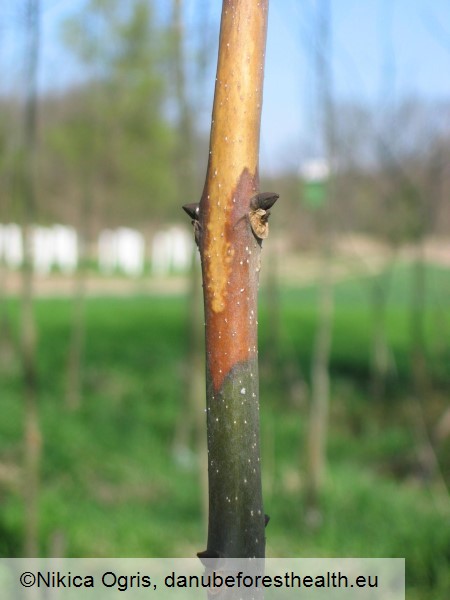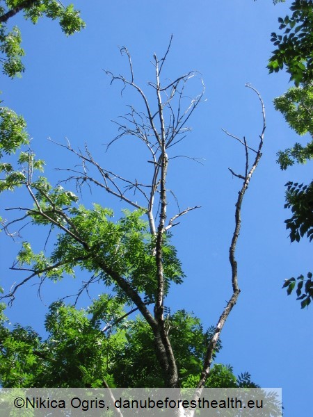 The disease affects mainly Fraxinus excelsior and F. angustifolia, while F. ornus is only minorly affected.