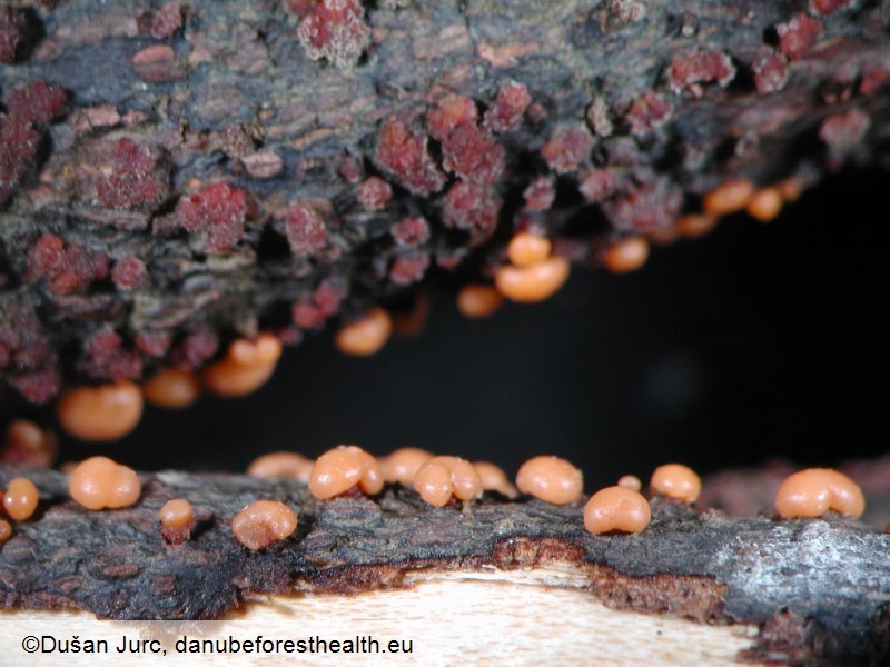 Fig. 3. Perithecia of Nectria cinnabarina in beech bark