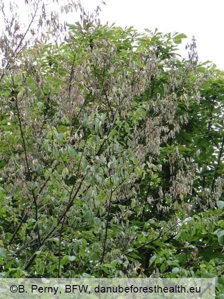 A similar species (Ophiostoma ulmi) caused the first wave of elms dieback in Europe, and the invasion of the second species, which is now probably predominant (O. novo-ulmi) resulted in the second wave of elms dieback. It causes massive dying of the elms. The disease occasionally occurs throughout Danube region.