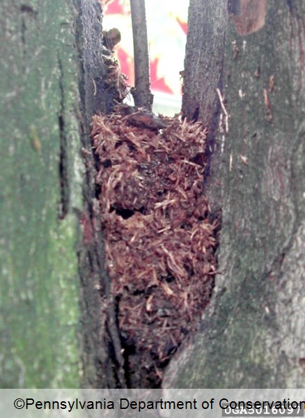 Fig. 5. Accumulation of frass in forks of branches caused by A. glabripennis