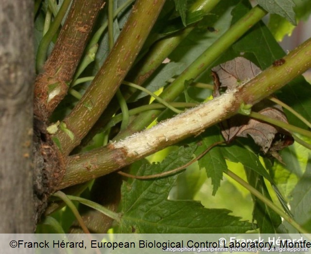 Various hardwoods in natural habitats, nurseries, plantations and urban areas: maples (Acer spp.), birches (Betula spp.), willows (Salix spp.), horse chestnut (Aesculus hippocastanum), poplars (Populus spp.), alders (Alnus spp.), hornbeams (Carpinus spp.), beeches (Fagus spp.), ashes (Fraxinus spp.), plane trees (Platanus spp.), cherries (Prunus spp.) and others. In Europe, the species has been found only in urban areas on maples (Acer spp.).